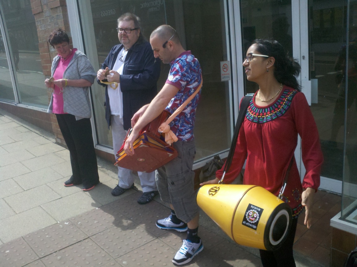 The usual weekly harinama in Birmingham is Saturday midday, and some devotees coming for the 24-hourkirtana joined it.