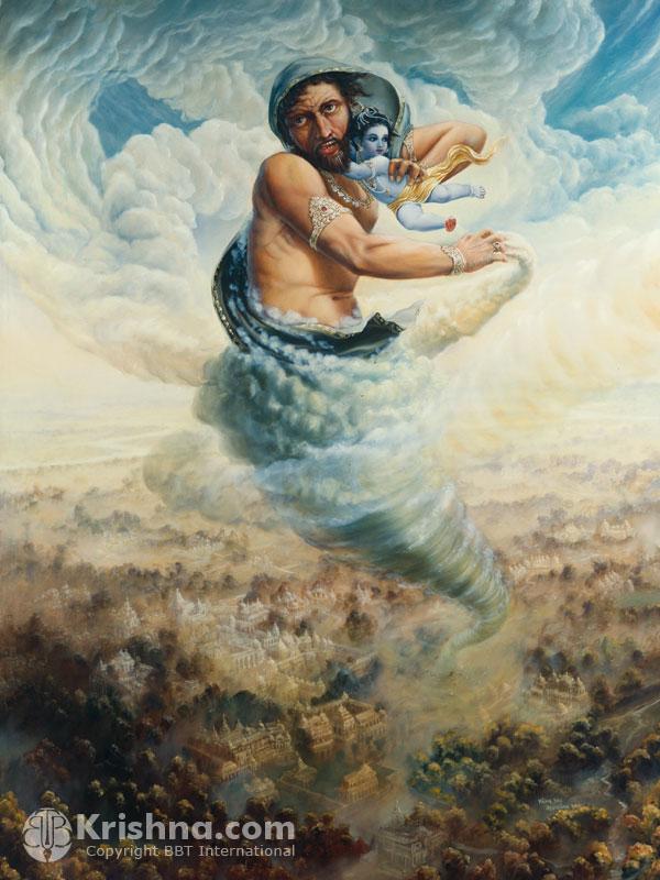 Sakatasura represents a load-carrying mentality arising out of old and new bad habits, from this life and previous lives. He also represents lethargy, dullness and false pride. Krishna removes this contamination by kicking it aside.