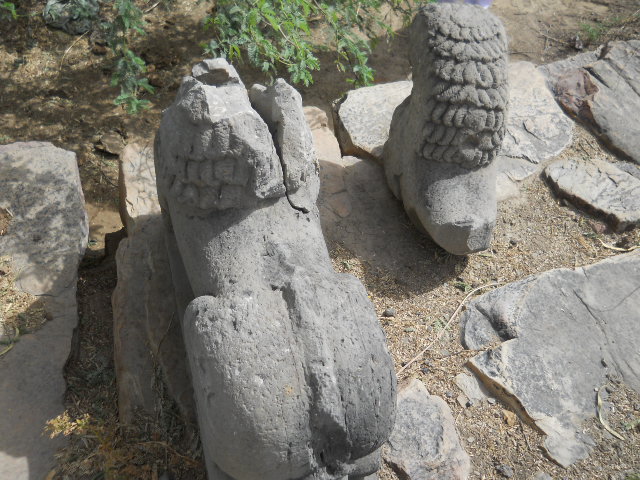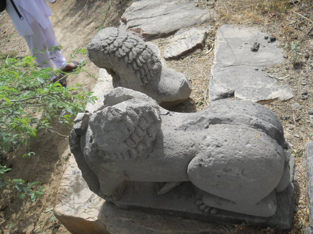 And finally mother Yashoda was thinking, “What should I do? He will be hungry. I cannot allow Krishna and Balaram to be hungry. It is not good for Their health.” So she began to think. Then she got an idea. She said, “Krishna-Balaram, You better come right now, because the Hau-Bilau is coming”. Krishna and Balaram said, “What is Hau-Bilau?” She said, “He is coming. He is coming, lets go.” They again asked, “What is this ‘Hau-Bilau’?” Yashoda replied with a huff, “Hmm… ‘Hau-Bilau’ walks on four legs and has very, very fierce eyes and big, big mouth and sharp, sharp teeth and he eats little children, and he is coming”. Then Krishna-Balaram looked at her and said, “We do not believe in “Hau-Bilaus”. There is no such thing.” And then mother Yashoda, she looked behind Krishna and Balaram from where they were standing and she said, “Here he is, the “Hau-Bilau” has come ahhh!!!” And then with big eyes she started running away as fast as possible. And when Krishna and Balaram saw this they were afraid to even look back. They immediately let out and scream and said, “Mother wait for us.” They started running full speed ahead and mother Yashoda ran all the way back to Nanda Bhavan and Krishna and Balaram ran and ran as fast as they could. They were afraid to even look back, and then They came into the house, and Yashodamayi had nice prasad ready for Them and They sat next to Nanda Maharaj. And Krishna and Balaram were telling Nanda Maharaj, “You should have seen this Hau-Bilau. He had big fiery eyes, and long teeth and big mouth and fur all over him, but We escaped. Somehow or other We ran so fast, We got away.” and Nanda Maharaj was very happy. So in this way mother Yashoda with her loving parental affection performed so many pastimes for the pleasure of Krishna and Balaram. It is also said, that after mother Yashoda saw that this pastime worked very good, she made these Murtis of Hau-Bilau. And when Krishna and Balaram would be naughty, she would say, “Beware, I will take you to Hau-Bilau”. So they would become very nice. So, even the Supreme Personality of Godhead, Krishna and Balaram fear Hau-Bilau! This is the sweetness of the Leela of Shri Vraja Dham.