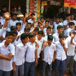 Balaramsvarupa Dasa, a disciple of Jayapataka Maharaj got news of our party arriving in town. He has been living and preaching in the area for many years now. When we arrived, he was there to meet us and to invite us to a government school preaching program. We all went together to the school where the teachers and children had gathered in a pandal on the school grounds. Everyone joined us in kīrtana, the kids danced happily and the Muslim teachers joined in too. After that, there was a chanting session and we attended a small class where students stated the importance of the Holy Names in Kaliyuga –and before leaving we distributed books.
