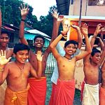 We stayed in Guruvayur for four days, a day longer than we initially planned due to the heavy rains. There is also a Gurukul in the town where students learn Sanskrit and study saṅgīta (music). We were fortunate to have all arrangements for prasādam and accommodation for Vedavyas Priya Maharaj, who has been joining us on pāda-yātrā, taken care of by Mohajwala Mataji, a disciple of Jayapataka Maharaj. The ISKCON Temple president in this area kindly gave the rest of our party a nice place to stay too. He also invited us to the temple and asked all the congregation devotees to join us on saṅkīrtana and to help us arrange programs. We performed saṅkīrtana and distributed books in the city every day with many of the congregation devotees coming along. When we were in the Gurukul area the students joined us, dancing and singing and afterwards Vedavyas Priya Maharaj, would give a nice class.