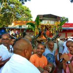 We joined the Janmastami celebrations in Bovikanam with many people dancing with us in saṅkīrtana and chanting. We inspired them to chant the Holy Names for world peace.