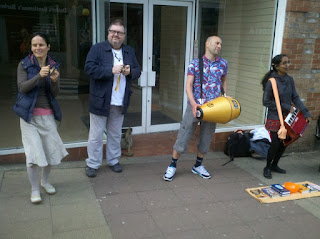 Every time we come to Chester-le-Street, the people become more favorable. More people gave donations than Newcastle, a much larger place. In the one and a half hours we were there people donated over £10 and took three or four books. Four different devotees took turns leading the chanting.