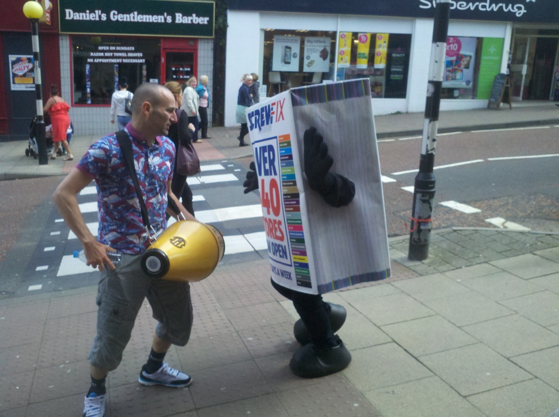 Once a costumed advertiser delighted in dancing with Prema Sankirtana Prabhu.