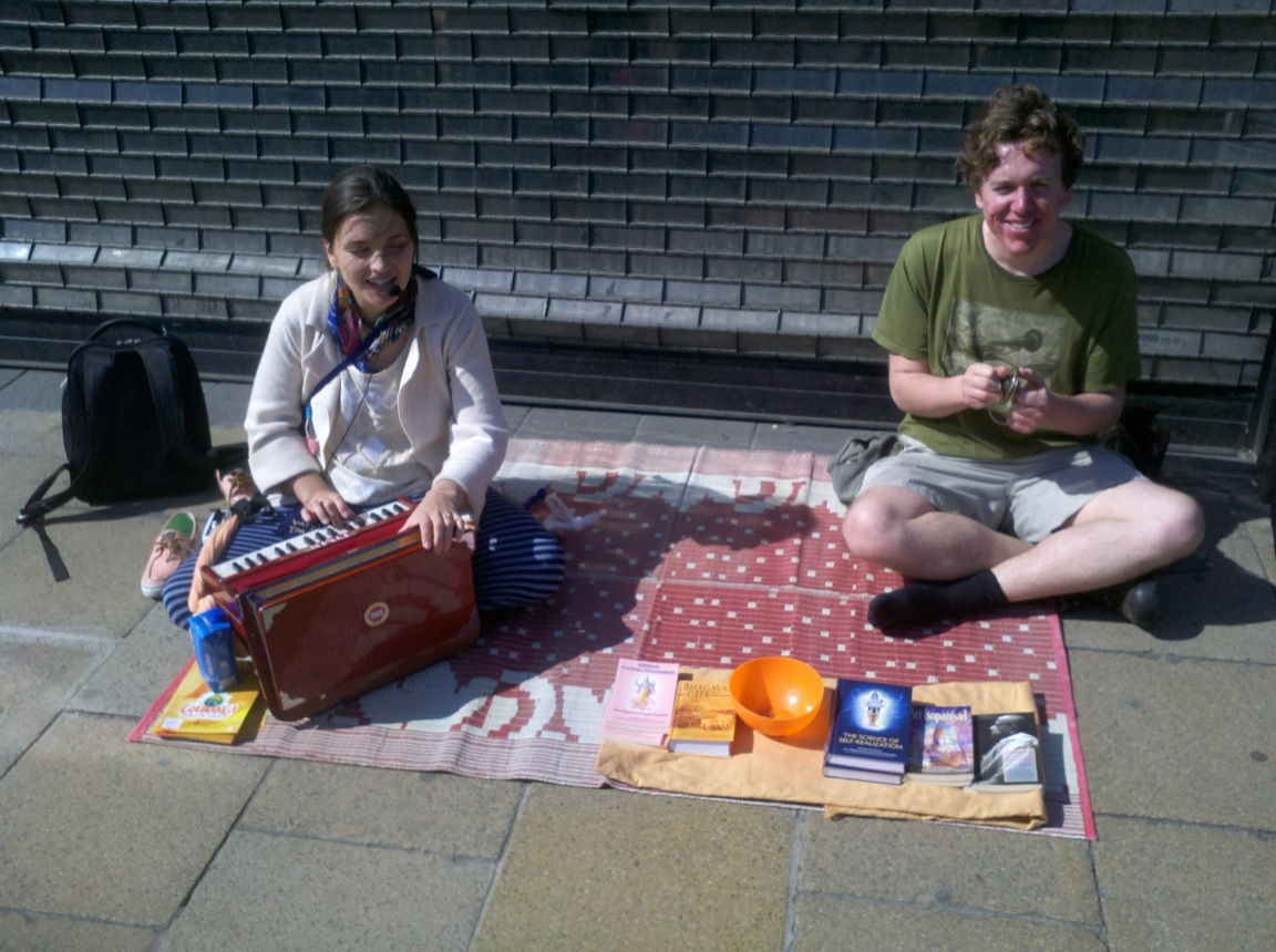Just fifteen minutes before I was going to stop for the day, Frances, an infrequent attendee at our Newcastle temple came by, and said she would chant with me for five minutes. Later she shared her experience on the Newcastle email list, “I chanced upon this [Sunderlandharinama] today and it changed the way my whole day went for the 10 minutes that I was able to stop for and take part. Thank you for being there today.”